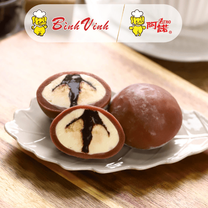 Điểm đặc trưng của bánh là kết cấu mềm mịn, mát lạnh, vị ngọt thanh hài hòa giữa kem sữa và nhân trái cây hoặc sô-cô-la. Khi cắn vào, lớp vỏ mochi dẻo nhẹ hòa quyện cùng phần nhân béo thơm và lớp mứt trái cây, mang lại cảm giác tan dần trong miệng rất thú vị.