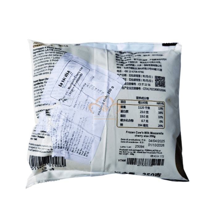Phô Mai Mozzarella Cherry Size đóng gói 250gr nhỏ gọn, thuận tiện để sử dụng và bảo quản theo từng khẩu phần