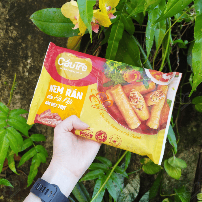 Nem Rán Hà Nội Thịt Đặc Biệt Cầu Tre là món ăn tiện lợi mang đậm hương vị truyền thống của ẩm thực Hà Nội. Sản phẩm được chế biến từ các nguyên liệu quen thuộc như thịt heo, miến, mộc nhĩ, cà rốt cùng các gia vị đặc trưng, tạo nên phần nhân đậm đà, hài hòa. Lớp bánh đa nem mỏng bọc bên ngoài giúp cuốn nem chắc tay và khi chiên lên sẽ vàng giòn hấp dẫn.